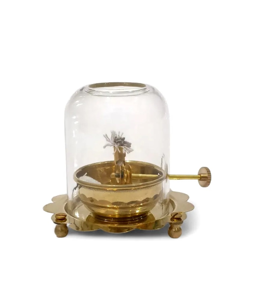 Decor Golden Akhand deep WIth Cover high quality Brass, Glass Table Diya