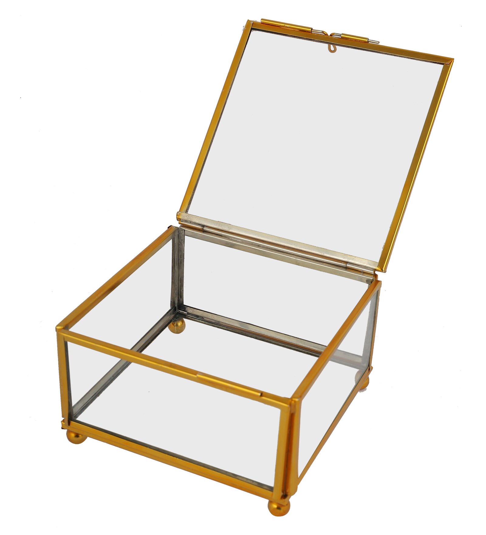 This exquisite decorative box combines the timeless appeal of brass with the clarity of glass, creating an elegant home for your cherished jewellery pieces or other small treasures. Its transparent design beautifully showcases contents, while the polished brass frame adds a touch of sophistication. Ideal for dressing tables, shelves, or as a thoughtful gift, this box offers both practical storage and a stylish accent to any decor.
