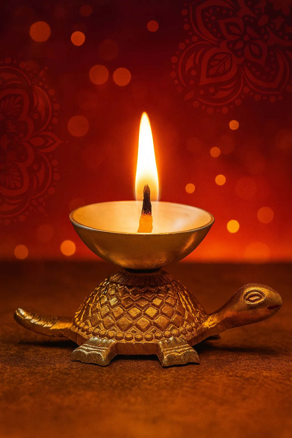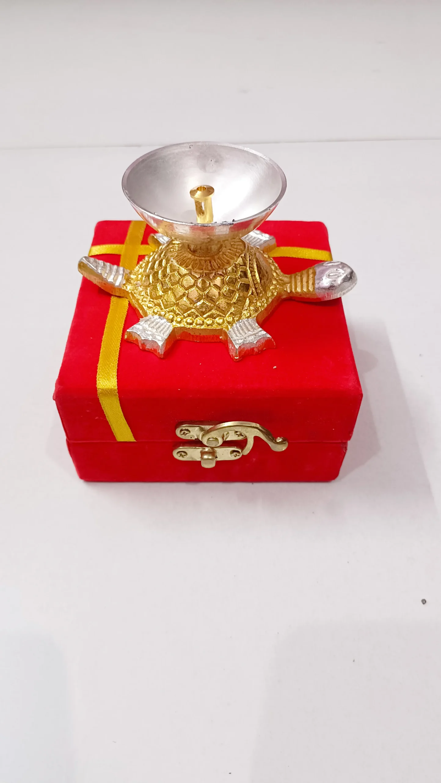 Made from high-quality metal, it boasts a radiant finish that adds an elegant touch to any puja altar, meditation space, or home decor setting. Ideal for daily prayers, festive occasions like Diwali, or as a thoughtful housewarming gift, this tortoise diya serves as both a sacred object and a charming decorative piece. Light it to create a serene and auspicious ambiance, inviting peace and blessings into your home.