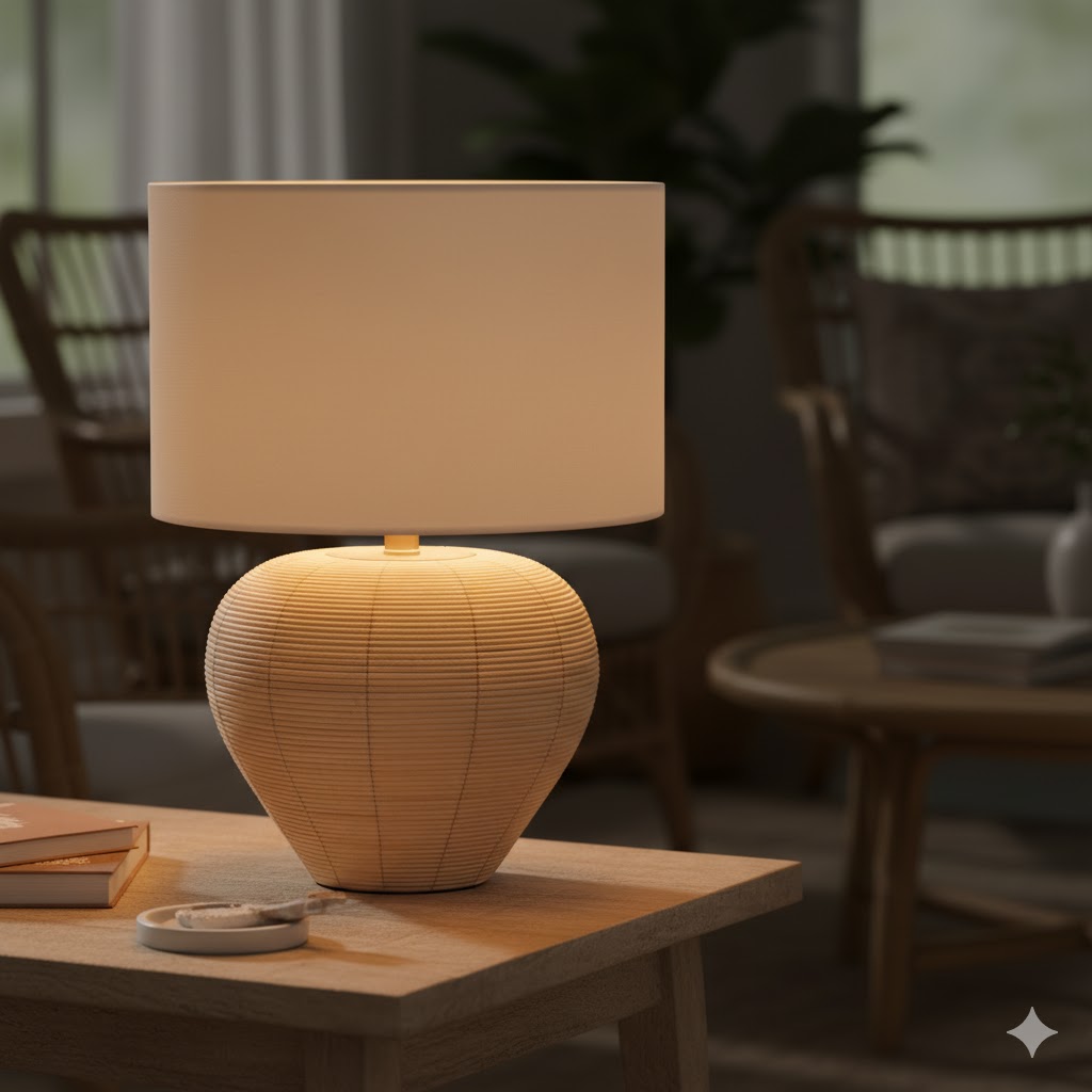 Whether placed on a side table or in a reading nook, this lamp easily integrates a Bohemian, coastal, or natural aesthetic into your home. When lit, it creates a peaceful and welcoming atmosphere—functioning not just as a source of light, but also as an artistic decorative accent piece.